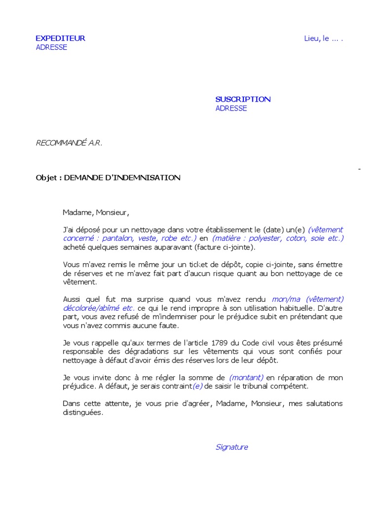 Example Lettre Reclamation