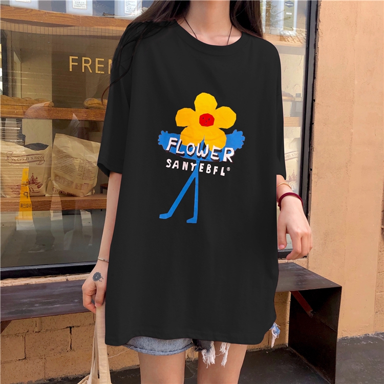 Kaos T Shirt Wanita Casual Lengan Pendek Model Longgar Motif Print Bunga Shopee Indonesia